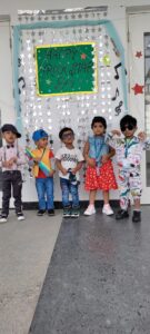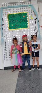 “I am a rock Star because I couldn’t be a soccer Star “. Our pre-primary students have come dressed up with Rock star attire and captured the attention with their appearance .For children; music and song encourage creativity and can foster a positive attitude towards school. our little kairosians witnessed singing reading songs, doing various chants, or even exercising to our Rhymes with a Rhythmic music.. Using music in our school has given our tiny tots a way to energize our environment. It has also increased efficiency, helped students make connections, and helped lock in information, exceptionally well when music and movement are part of the day. Yet, through music we are able to engage, educate, differentiate and increase understanding and retention by simply using something students already connect with. Some of them walked with a style and with a jazzy out fits and costumes to make the day more vibrant.